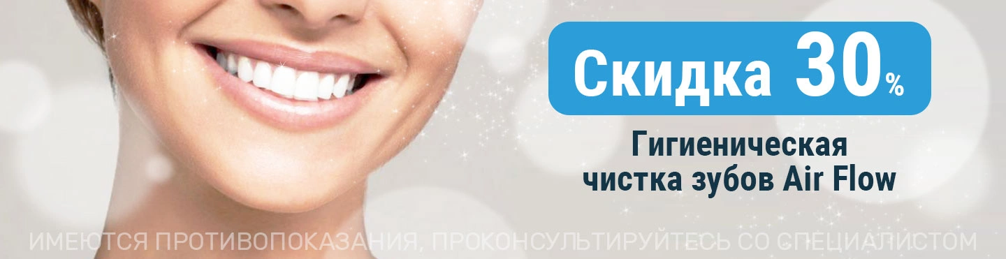 *Скидка на услугу "Профессиональная гигиена полости рта и зубов системой AirFlow (1 процедура — 1 челюсть) предоставляется при условии лечения одного или нескольких зубов в Клинике ТАНМЕД в течение 10 дней после лечения.