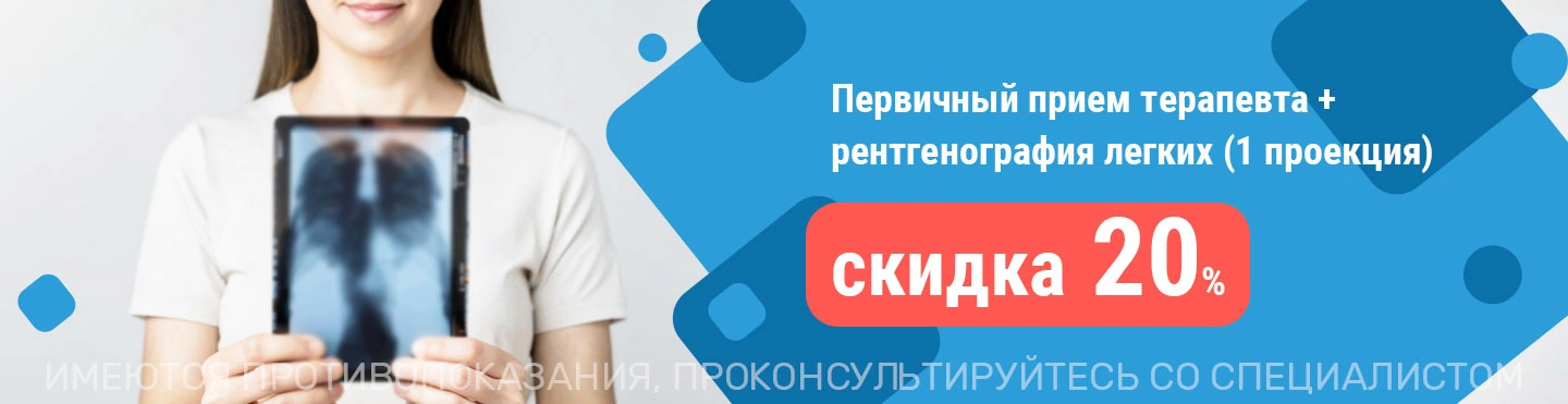 Запишитесь в медицинский центр ТАНМЕД на прием к терапевту и получите скидку 20% на прием специалиста, а также на ретгенографию легких (1 проекция).